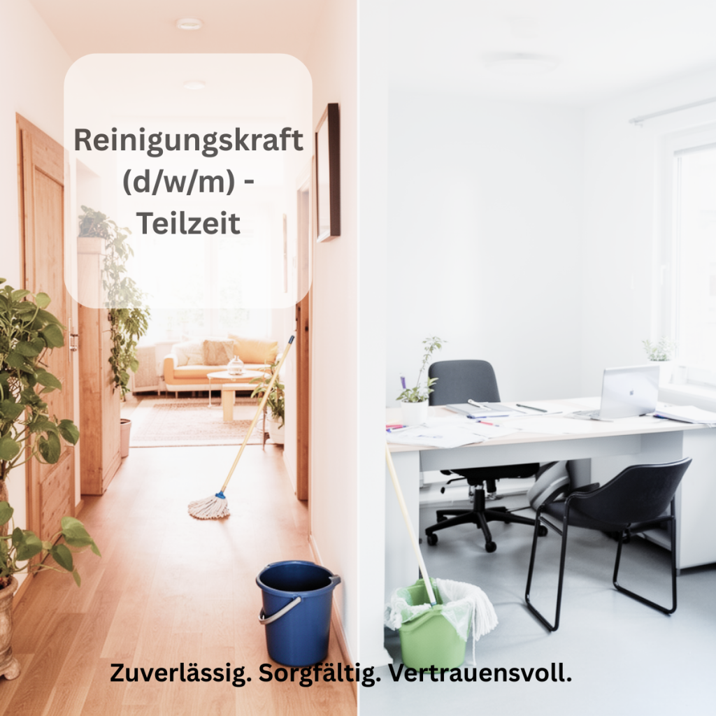 Du arbeitest gerne selbstständig und legst Wert auf Gründlichkeit und Vertrauen? Als Reinigungskraft sorgst du in unserem Privathaushalt für Sauberkeit und Ordnung. Ob Minijob oder Teilzeit – wir bieten faire Bedingungen, ein angenehmes Arbeitsumfeld und langfristige Zusammenarbeit.